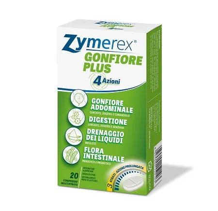 Zymerex gongiore + 4 azioni è un integratore alimentare con prebiotici e probiotici ed estratti di carciofo, zenzero, meliloto, coriandolo e genziana che agiscono su: