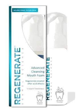 Collutorio in mousse che aiuta a rigenerare lo smalto dentale dopo gli attacchi degli acidi.