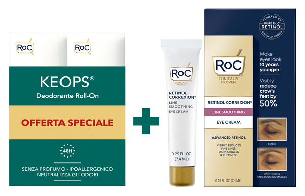 ROC KEOPS DEODORANTE ROLL-ON 48H BIPACK 30 ML + CORREXION LINE SMOOTHING EYE CREAM 7,4 ML IN OMAGGIO