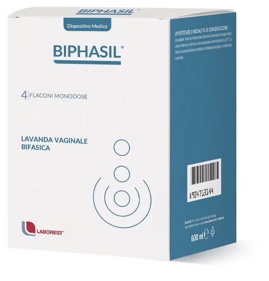 Preparato innovativo per formulazione e modalità di utilizzo. Si tratta di una lavanda pronta all’uso, bifasica, costituita da due soluzioni tra loro ben separate che vengono liberate in vagina, semplicemente comprimendo il flacone. Viene per prima rilasciata la fase azzurra a base acquosa con attività detergente e successivamente la fase trasparente a base di olio-gel che, grazie al processo di bio-adesione, garantisce una uniforme ed efficace distribuzione delle sostanze funzionali del preparato sulla mucosa. A livello della mucosa vaginale si forma un film protettivo che consente di mantenere ed eventualmente di facilitare il ripristino delle condizioni fisiologiche della mucosa vaginale in caso di processi flogistici e di infezioni di varia natura.